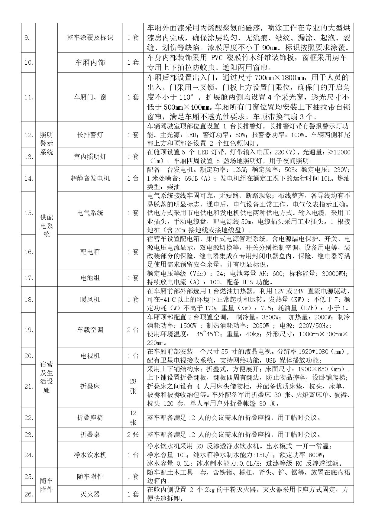 主要裝備床鋪等宿營設施,在滅火救援及其他災害事故現場為救援人員提供休息場所,集人員輸送和休息為一體,滿足24人的衛浴休息需求。