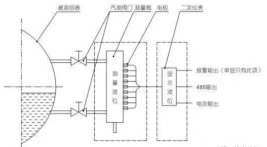 電接點水位計是根據汽和水的電導率不同測量水位的。高壓鍋爐的鍋水電導率一般要比飽和蒸汽的電導率大數萬到數十萬倍,電接點水位計是由水位測量容器、電極、電極芯、水位顯示燈以及電源組成。電極裝在水位容器上組成電極水位發送器。電極芯與水位測量容器外殼之間絕緣。由于水的電導率大,電阻較小,當接點被水淹沒時,電極芯與容器外殼之間短路,則對應的水位顯示燈亮,反映出汽包內的水位。而處于蒸汽中的電極由于蒸汽的電導率小,電阻大,所以電路不通,即水位顯示燈不亮。因此,可用亮的顯示燈多少來反映水位的高低。利用飽和蒸汽與飽和蒸汽凝結水的電導率的差異,將非電量的鍋爐水位變化轉換為電信號,并由二次儀表遠距離地顯示水位。電接點水位計基本上克服了汽包壓力變化的影響,可用于鍋爐啟停及變參數運行中。電接點水位計離汽包很近,電極**二次儀表全部是電氣信號傳遞,所以這種儀表不僅遲延小而且誤差小,不需要進行誤差計算與調整,使得儀表的檢修與校驗大為簡化。在實際應用中,電接點水位計水位的測量是斷續的,并且對與汽包連通的水位容器選擇必須適當,以減小測量誤差。